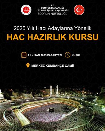 21 Nisan Pazartesi günü saat 9.00 ‘da Merkez Kumbahçe Camii’nde Hacı Adaylarımıza Yönelik Hac Hazırlık Kursu düzenlenecektir.