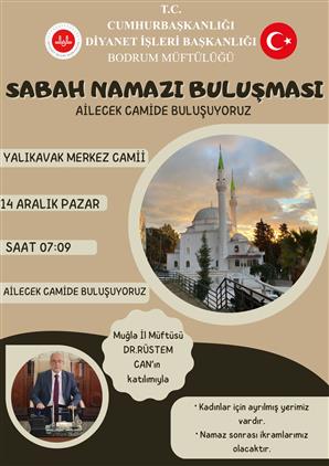 14 Aralık Pazar Yalıkavak Merkez Camii'nde Sabah Namazı Buluşması