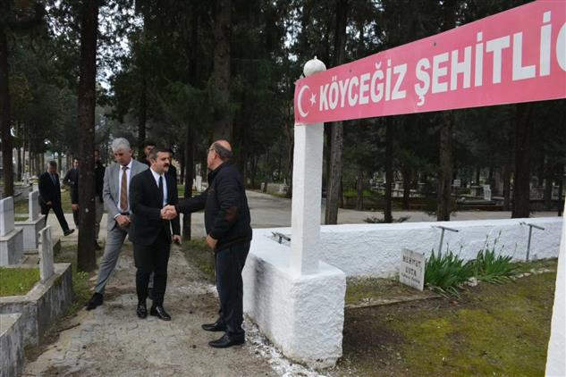 Sabah saat 09:00 daki resmî törenin akabinde İlçe protokolüyle birlikte Şehitlik ziyareti yapılarak Din görevlilerimizin Kur'an-ı Kerim tilavetinin ardından Müftü Karagöz Şehitlerimizin kabri başında duada bulundu.
