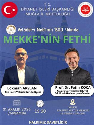 T.C. Diyanet İşleri Başkanlığı Muğla İl Müftülüğü tarafından, Velâdet-i Nebî’nin 1500. Yılında Mekke’nin Fethi konulu program düzenlenecektir.