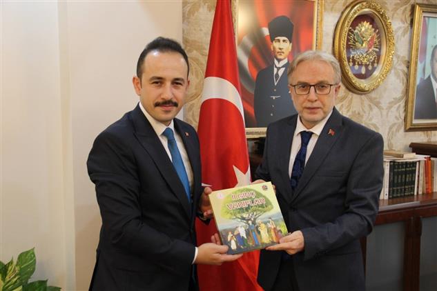 Ziyaret sonunda Müdür Vural, Müftü Can'a İlginç Vakıflar kitabını hediye etti.