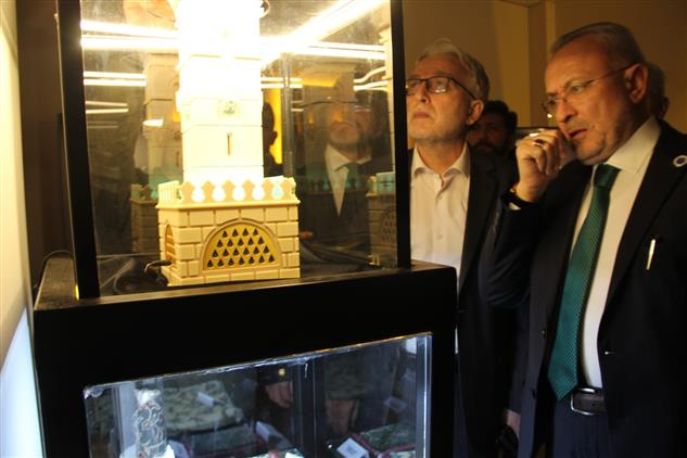 Muğla İl Müftüsü Dr. Rüstem Can, Denizli ili programları kapsamında, Hazreti Peygamber’in (s.a.s.) dünyaya teşriflerinin 1500. sene-i devriyesi vesilesiyle Denizli Valiliği himayesinde ve Denizli İl Müftülüğü koordinesinde Şükrü-Fatma Zeybekci Camii altında açılan Erol Güzel’e ait “Hadimü’l Haremeyn Mukaddes Emanetler” Sergisini ziyaret etti.